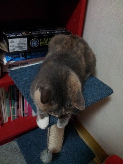 스크레처에 걸터 앉은 김고양이 하아~ 참치 먹고 싶다