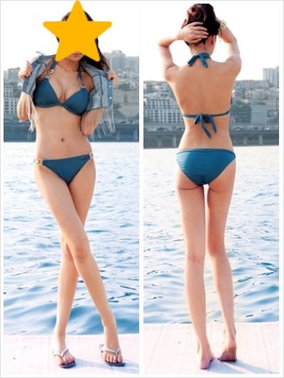 참젖감별사입니다. 사진 속 모델은 가슴 수술을 했네요 즉 의젖입니다. 보통 가슴은 비키니를 착용했을 때 저렇게 동그란 모양이 나오지 않습니다.