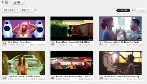 허허... 이렇게 써있는데 유튜브에서 강남스타일을 빼더니 복구를 안시켜주는건 무슨 상황이죠??????? 그리고 25위 랭크도 왜 안되있는 겁니까??? 몇 일 지켜보다가 계속 그래서 사람들에게 알리고자 이렇게 씁니다 유튜브 뇌물받은건가요? 일부로 강남스타일 막을려고 저러는 걸까요? 매일 업데이트 된다면서요?????? 장난하나요??? 설마 아시아꺼라고 무시하나요??? 혹시 영어 좀 되시는 분들 유튜브 측에 강남스타일 뮤비 문의 좀 넣어주세요! 제발요!!!!!!!