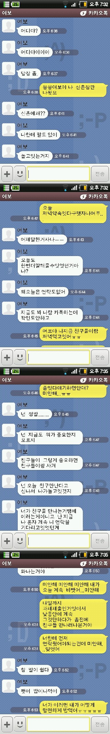 대체 뭘 그리 잘못했길래 저러는 건지ㅡㅡ 참 남친도 안타깝다