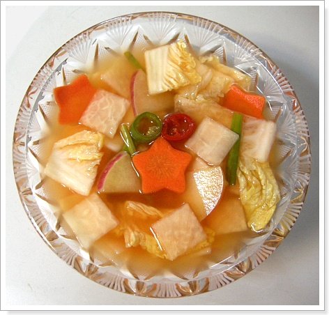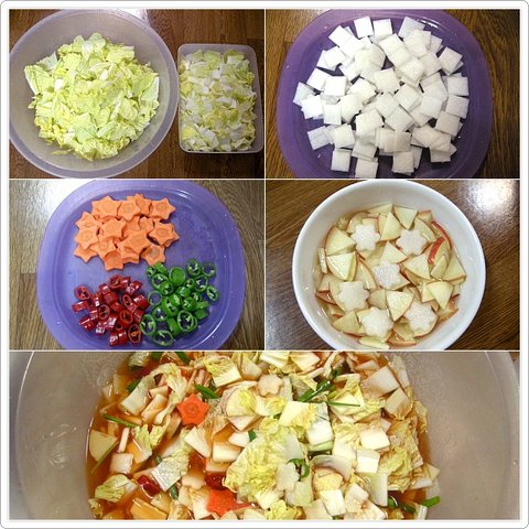 * 재료 : 속배추1통, 무, 당근, 사과1개, 배1개, 청/홍고추, 실파, 미나리, 마늘5개, 생강1개