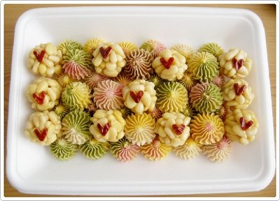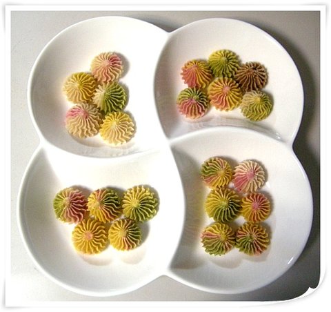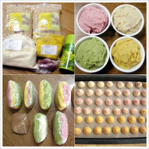 * 재료 : 백옥앙금, 녹차가루, 단호박가루, 백년초가루, 카카오가루, 아몬드가루, 달걀노른자