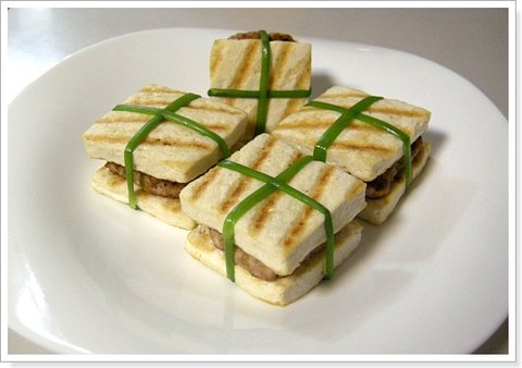 그릴팬에 구운 두부와 고소한 떡갈비를 넣은 두부산적