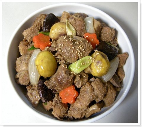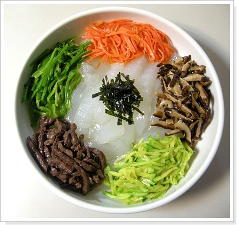 * 재료 : 청포묵, 소고기, 호박, 표고버섯, 당근, 미나리, 김, 참기름, 간장