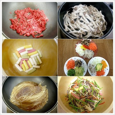 * 재료 : 떡, 당면, 소고기, 당근, 양파, 부추, 표고버섯, 애타리버섯, 파프리카, 간장, 참기름, 후추