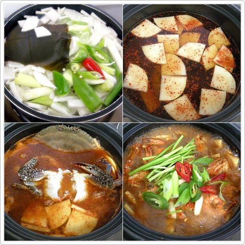 * 재료 : 꽃게3마리, 새우5마리, 무, 미나리, 쑥갓, 대파, 청/홍고추