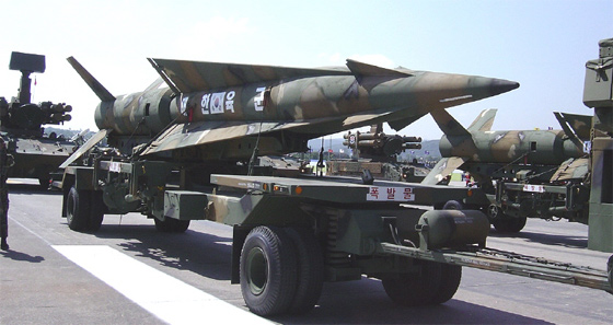 1979년에 전두환정권이 미국과 맺은 ‘한미 미사일 지침’ 으로 우리나라는 탄도미사일 사정거리를 180km로 제한하는 족쇄를 차게 됩니다. 1986년에 백곰을 개량한 사정거리 180km의 '현무’를 개발합니다. 김대중정권 들어서 사정거리 300km, 탄두중량 500kg로 연장에 합의하여 현재에 이르고 있습니다.