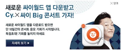 SK컴즈 ‘싸이월드’ 와 싸이의 콜라보레이션 콘서트 ‘CY X PSY콘서트’ 에 멜론 회원 총 100명 무료로 초대, 멜론 이벤트 페이지에서 ‘싸이월드’ 앱 다운받고 로그인 시 자동응모