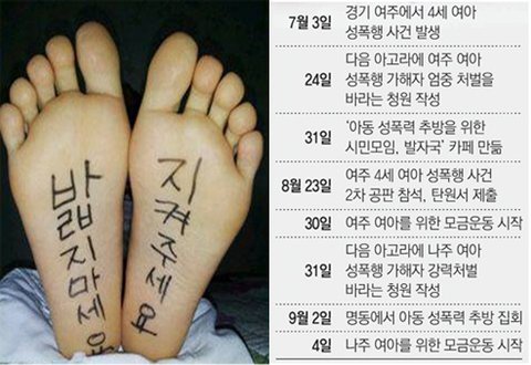 올해 7월 여주에서 발생한 4세 여아가 이웃 아저씨에게 성폭행 당한 사건이 있었데.