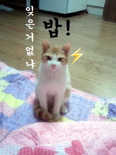고양이 맹이를 데리고 왔습니다.