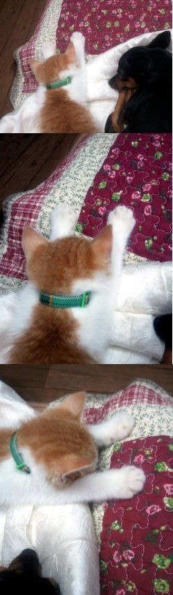 구멍사이에서 새끼고양이가 박혀<?> 있었는데