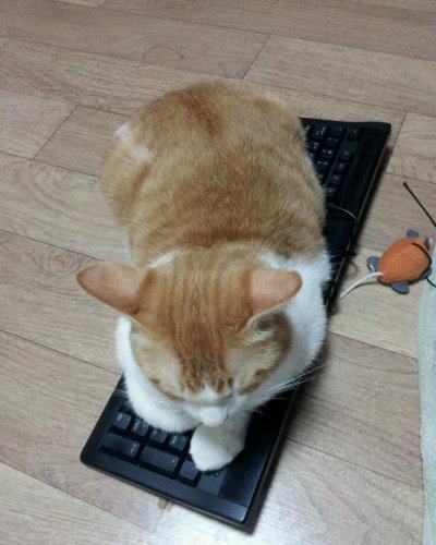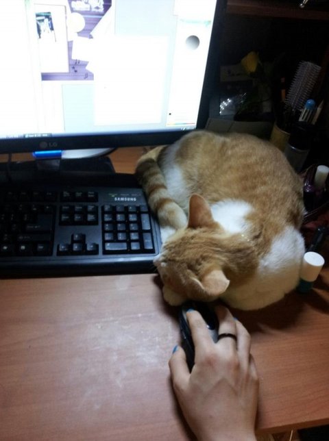 집에서도 할일이나 컴퓨터를 하면 꼭 저렇게 있습니다. 마우스를 못만지게 해요