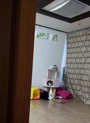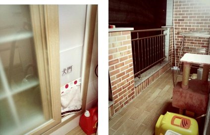 베란다에 냥이 문을 사서 만들었어요