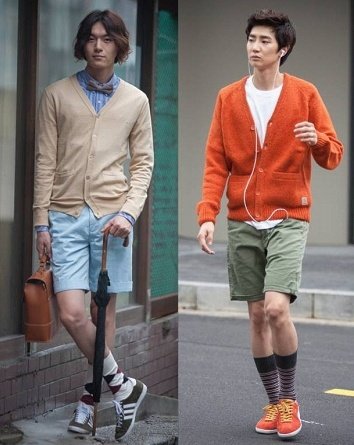 가을에 긴팔 가디건에 반바지 매치는 옷좀 입으시는