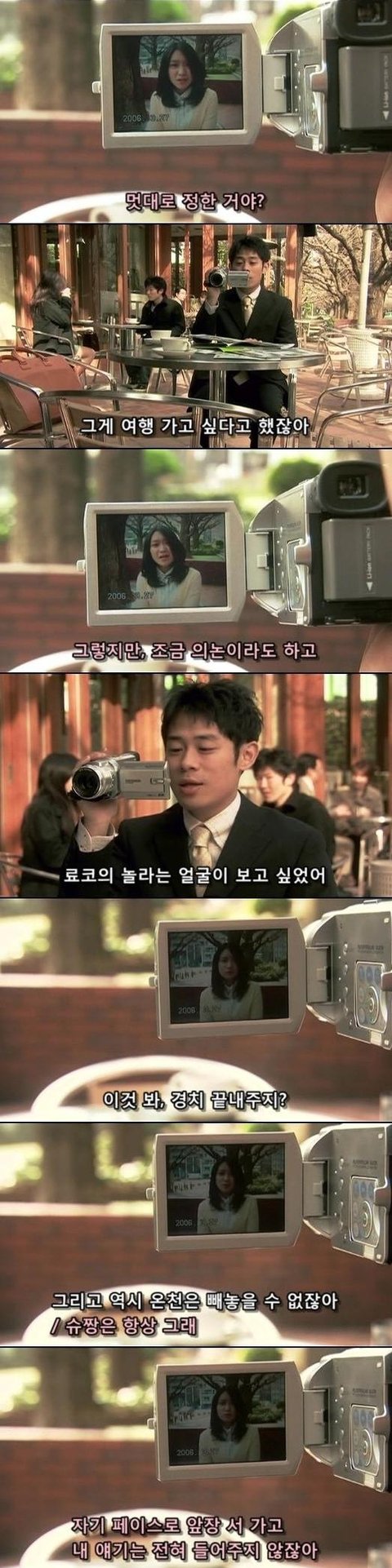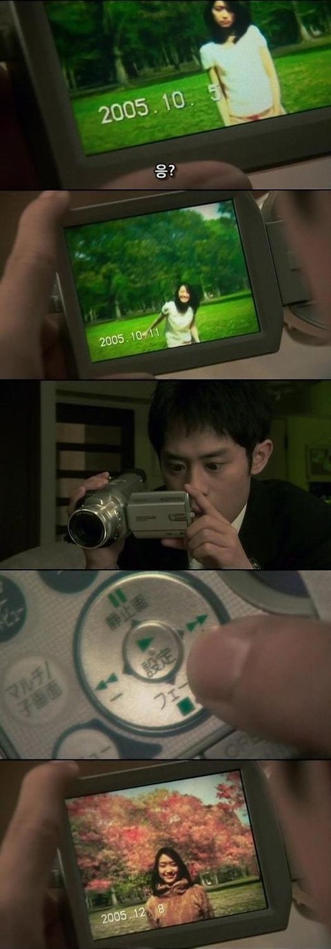 캠코더의 디스플레이된 날짜와 시간이 휙휙 넘어가기 시작함. 정지버튼을 눌러도 동영상은 멈추지 않고, 날짜가 지남에 따라 동영상속 약혼녀의 복장이나 주변 풍경이 계절에 맞게 휙휙 바뀜. 멘붕에 빠진 남주.