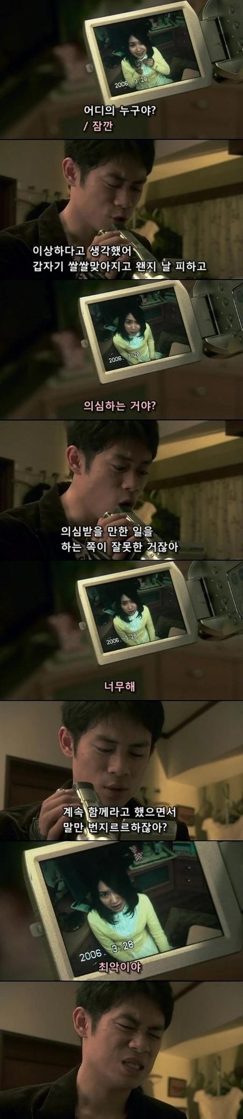 집으로 돌아와 그녀와의 추억을 회상하며 그녀를 찍은 동영상을 보고있는 남주.