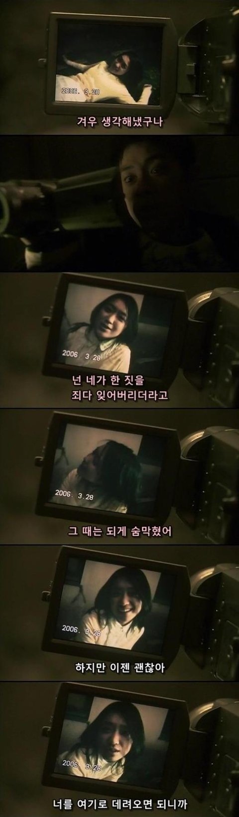 그런데, 흐릿한 장면에서 약혼녀가 캠코더를 사용하지 않고도 보였다가 장면이 선명해지면서 안보이는걸 눈치챈건 나뿐임?