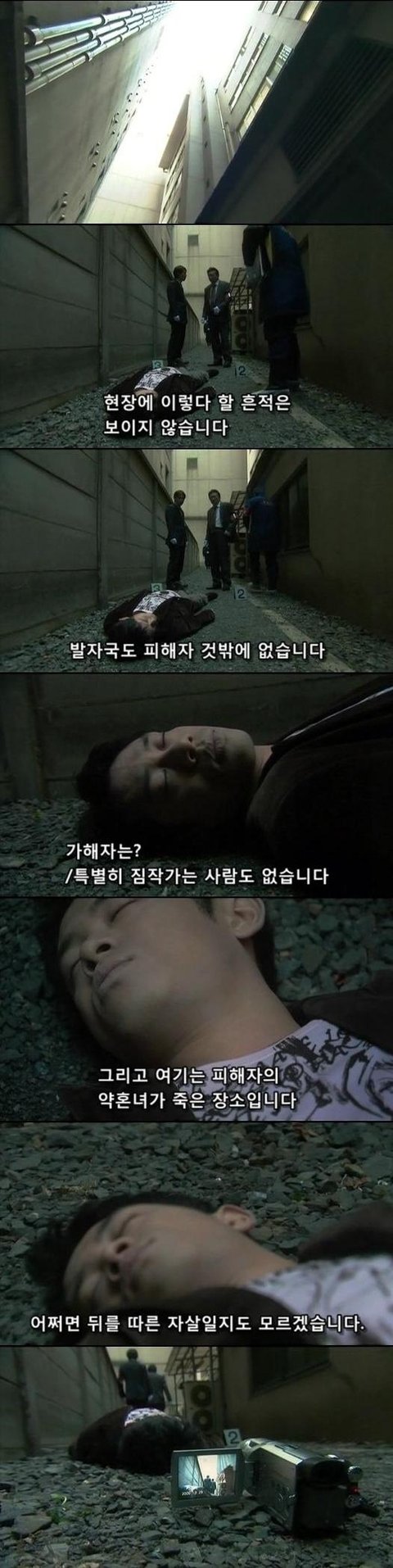 남주는 차디찬 바닥에서 시신이 되어 누워있고, 경찰들은 약혼녀의 죽음에 비관한 남주가 약혼녀가 죽은 장소에서 그녀를 따라 자살한것이라 생각함. 그리고 캠코더는 아직도 그 모습을 찍고 있음.