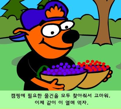 아이들이 열매를 따러 간 사이 미련한 곰님이 음식 다먹고 어질러놈