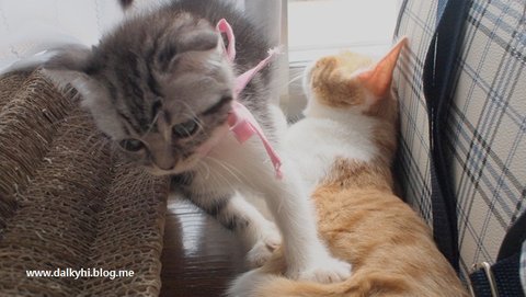 그럼?? 지금은?? 앙즈도 유봉이 성격에 적응됐는지 둘이 싸우는 건 진짜 많이 줄었으나... 집사가 안 놀아줄때 최후의 수단으로 서로 마지못해 술래잡기하고 놈~ 하지만 둘이 껴안고 잔다거나 그루밍같은 건 절대 없음...