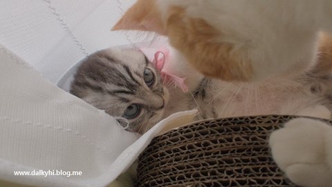 반면 앙즈는 저 어린게 하악질 초 작렬!! 솔직히 고양이 하악질을 못적이 없던지라 나도 쫌...