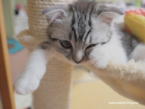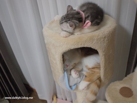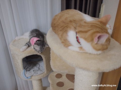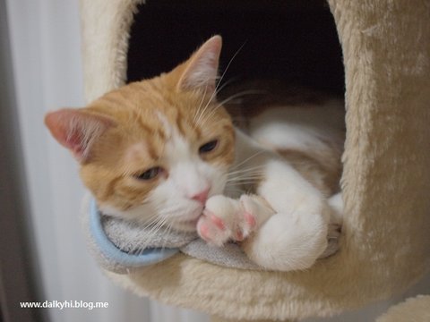유봉이 녀석!! 쫌 동생한테 캣타워집 좀 양보해주지... 다 큰 놈이 꾸겨꾸겨 저래 들어가 있음...사실 앙즈가 저기 넘 좋아해서 자주 들어가서 자는데... 젤러시의 화신인 유봉이!!