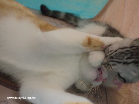 그래도 저 노랑 고양이도 여기 사는 짐승으로 인지하고 왠만하면 하악질 안하지만... 유봉이도 꼬래 남냥이라고 서열정리 들어감... 목 깨물깨물할 때만 앙즈 하악질 작렬!!