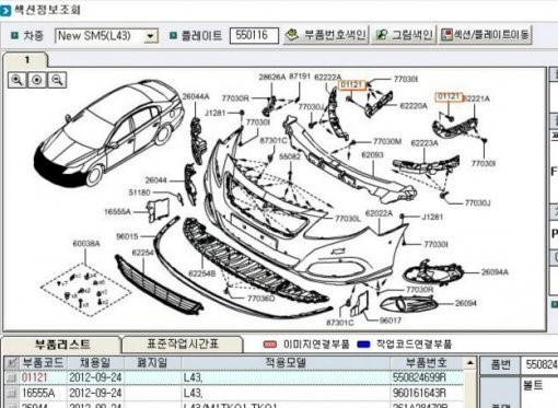 르노삼성자동차 SM5의 페이스리프트(부분변경) 모델이 위장막이 가려진채 포착돼 관심을 끌고 있다. 일부 자동차 커뮤니티에서는 이 모델의 부품 카탈로그까지 올라와 내외관디자인을 짐작케 했다.
