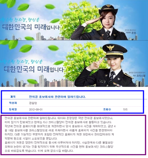 홍보 이미지 2012 전의경 홍보대사 에프엑스 크리스탈로 교체