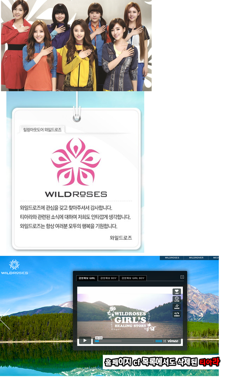 공식 홈페이지 메인에 사과문 제시 + 홈페이지 이미지 CF영상 티아라 삭제