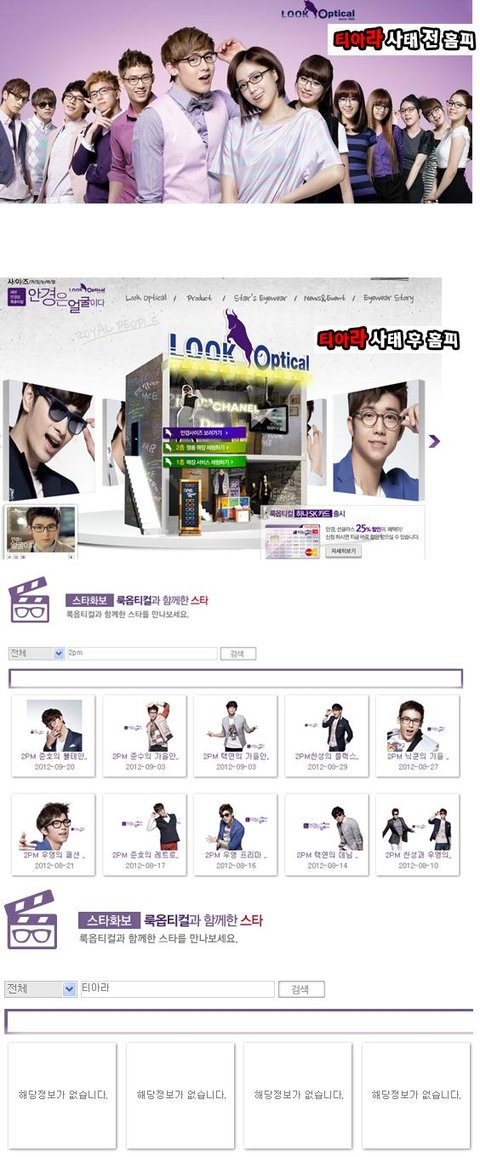 * 안경업체 룩옵티컬 티아라 사진 + 포스터 전량 회수 , 홈페이지 2PM으로 교체