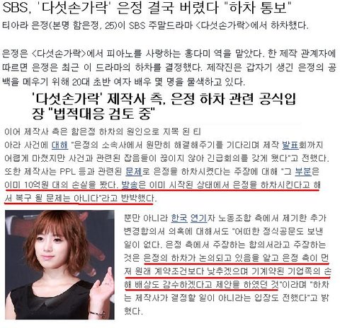 * 다섯 손가락 홍다미 역 은정 아역 출연 때 하차 결정