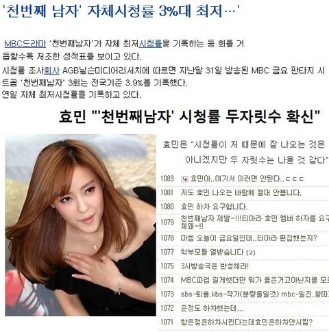 * 천번 째 남자 구미모 역 효민 평균 시청률 4%