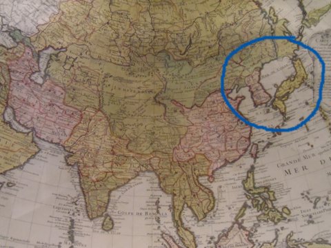 우리나라와 일본 사이의 바다는 'MER DE COREE'로 표기되어 있다.