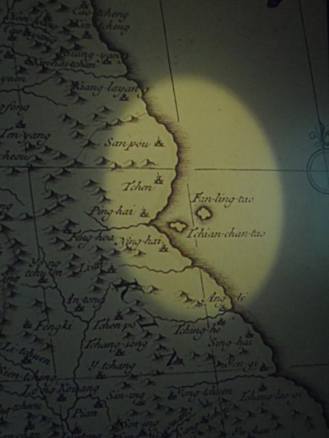 동해안 가까이에 울릉도(Fan ling tao)와 독도(Tchian chan tao)가 표기되어있다.
