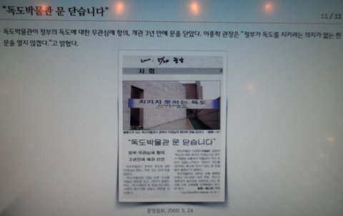 독도박물관이 정부의 독도에 대한 무관심에 항의, 개관 3년만에 문을 닫았다. 이종학 관장은 "정부가 독도를 지키려는 의지가 없는 한 문을 열지 않겠다."고 밝혔다.