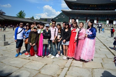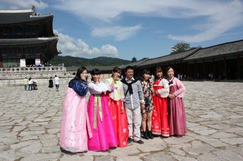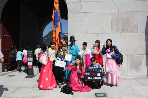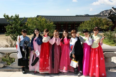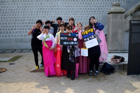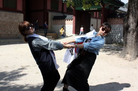 저희는 열한시에 모두 모여서 경복궁에서 '강남스타일' ucc 촬영을 했고,