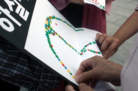 준비해간 저 피켓에 시민 분들이 참여하실 수 있도록 스티커를 받았답니다!