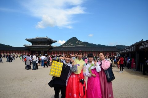 역시 우리나라의 '궁'에서 한복 차림을 하니까 눈에 확 띄더라구요!