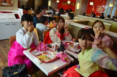 저렇게 한복 입고 팔랑거리며 지나가는데