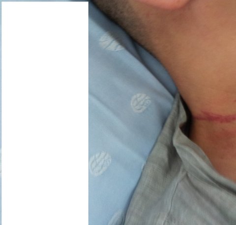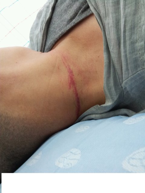 저는 20여년 전 교통사고로 3년 동안 하반신 마비로 병원에 있었고, 6급 장애인입니다. 그것을 뻔히 아는 친아버지가 그대로 밀어트려서 시멘트의 충격을 그대로 흡수했고, 지금 허리가 끊어질 것 같습니다. 목 안 쪽에서 부풀어 올라 침 삼킬 때마다 쓰라리고, 메스껍습니다. 쓰고 있던 안경은 금이 갔고, 얼굴에도 상처가 나 있습니다.