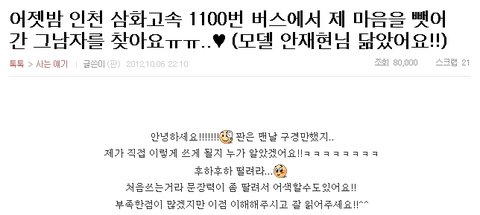 ↑ 이제 네이트에 버스남이나 1100번이라는 단어를 쳐도 저의 이야기가 뜨구요..^_^*