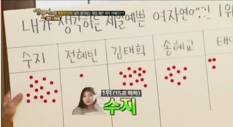 스태프 43명이 투표에 참여했는데 1표차이로 수지가 김태희를 제치고 1위를 차지했음.