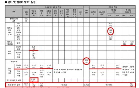 가장 빠른 '최종' 합격자 발표일은 10월 31일 입니다.