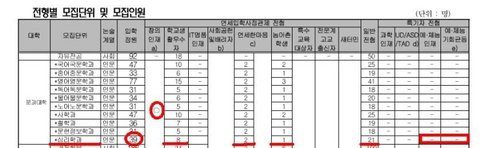 다시 말해서, 예체능 특기자 혹은 연예인들을 위한 특례 전형 같은건 저희 과에 해당이 없기 때문에