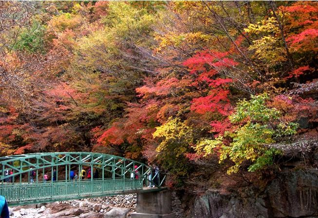 설악산은 단풍 명산 중에서도 첫손으로 손꼽히는 곳이다. 높이 1708m의 설악산은 사시사철 빼어난 산세와 계곡과 기이한 바위들이 조화를 이루고 있지만 무엇보다도 가을에는 선명하고 고운 단풍 빛깔로 최고의 자태를 뽐낸다.