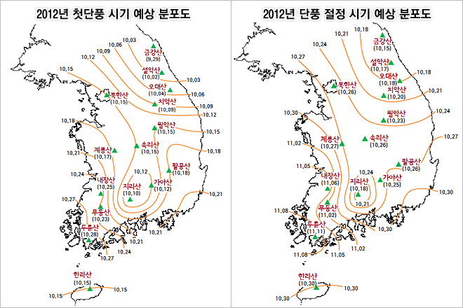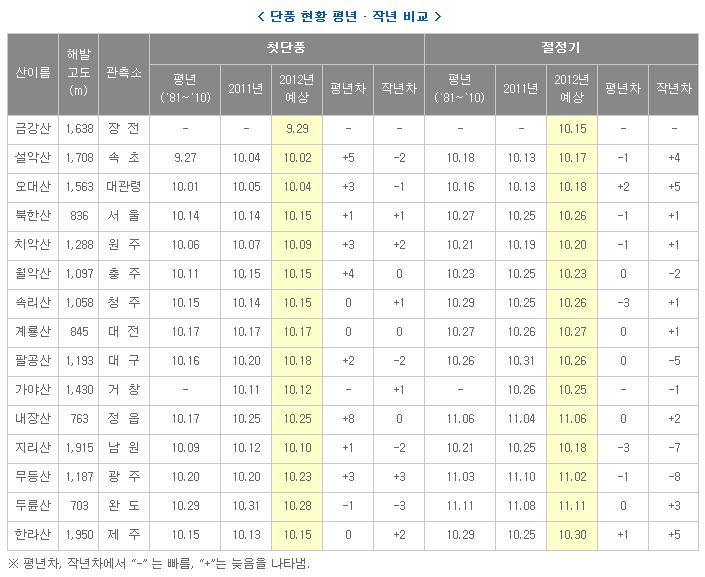 기상청 2012 전국 단풍 개화 시기 정보 보기 ==> http://www.kma.go.kr/weather/forecast/theme_flowering04.jsp