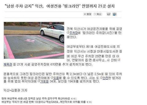 ▲)설명 : 여성부가 이번에도 한건 했음. 여성전용주차선을 만듬.