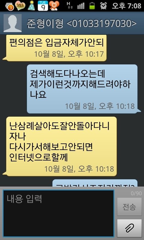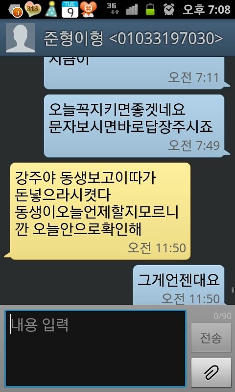 하지만 이 과일노므 시키 이제 돈받앗다이검돠 답장 2시간에 하나씩오고 4시간잇다 오고 젤로 오래걸린건 6시간임돠ㅡㅡㅋㅋㅋㅋㅋㅋㅋㅋㅋㅋㅋ개 야마