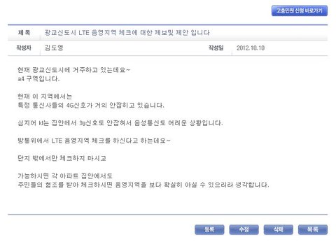 분당에서 lte 안된다고 불만 접수 폭주하고 난리도 아니었다던데